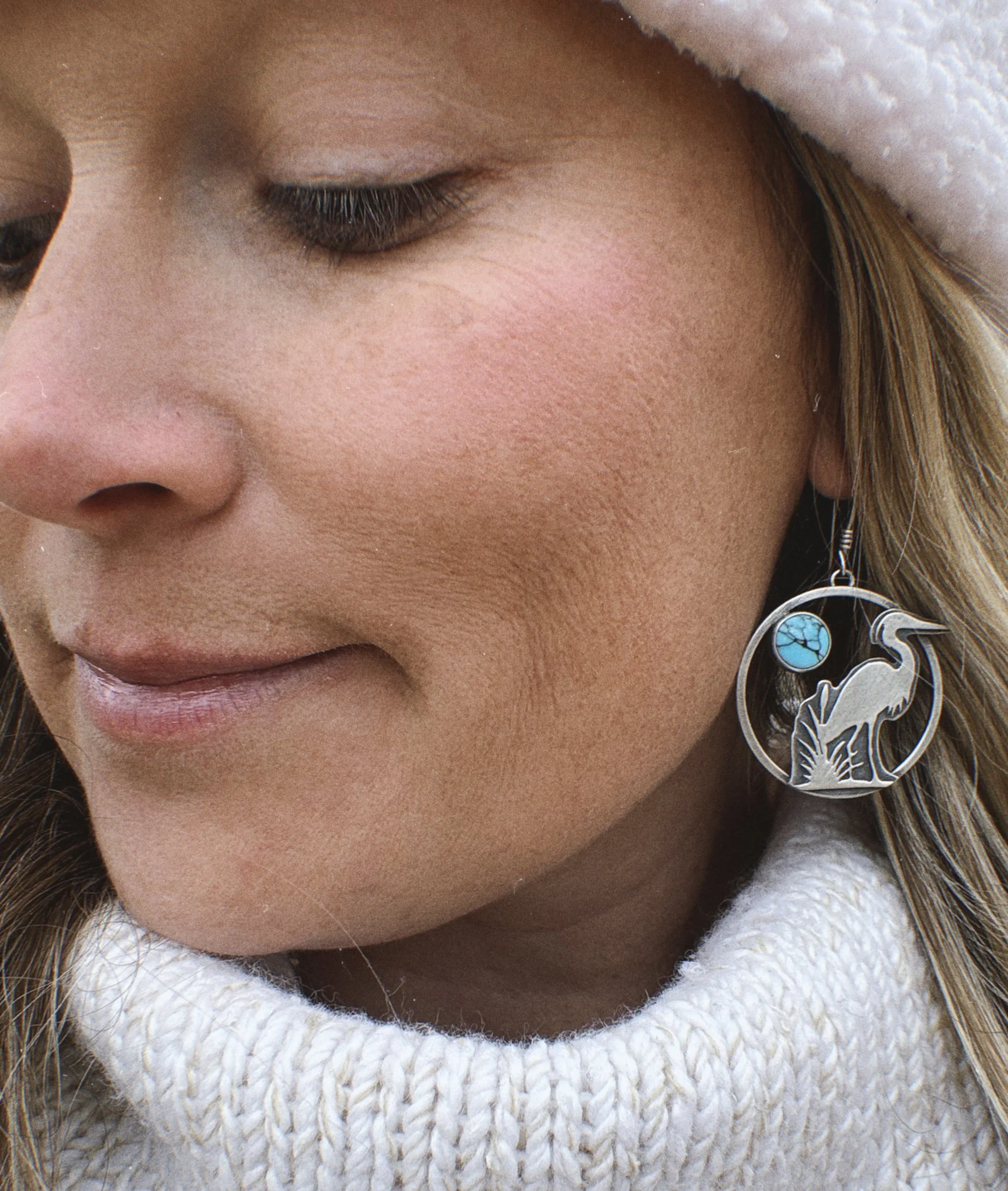 Sterling silver + Egyptian turquoise. Hand fabricated herons. Handmade Sterling silver earring wires.